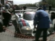 MONZA, ITALY - APRIL 28: (AUDIO OMITTED) The Martini Lancia LC2/85 Ferrari comes into the pitlane for a pit stop and driver swap as Riccardo Patrese climbs out of the car and Alessandro Nannini stands at the ready with his seat to take over driving duties during the Monza 1000km at Autodromo Nazionale Monza on April 28, 1985 in Monza, Italy. (Footage by Duke Video/Getty Images)
