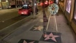 This video features various shots of the floral tribute placed on the star of late actor Ryan O'Neal on Hollywood Boulevard. The footage includes different angles and distances of the star with flowers, captured in a steady, horizontal format.