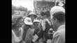 Title "Auto Racing" superimposed over Indianapolis 500 / race in progress / car crashes / car 14 wins, driven by Bill Vukovich / Vukovich kisses wife Jane after winning race