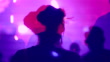 Double layer video, with girl dancing in a nightclub with a ton of lasers and strobe color lights, moving in slow motion