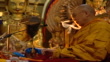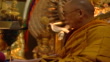 DHARAMSALA, INDIA - CIRCA 2005: Tsuglagkhang Temple. Side angle of HH the Dalai Lama seated on a throne at a prayer service. Buddhists flock to the temple to attend HH the Dalai Lama's teachings.