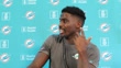 FRANKFURT AM MAIN, GERMANY - NOVEMBER 2: Tyreek Hill, #10, talks about why international fans should support the Miami Dolphins as he speaks to the media during a Miami Dolphins press conference at PSD Bank Arena on November 2, 2023 in Frankfurt am Main, Germany. (Footage by Alex Grimm/Getty Images)