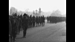 United States soldiers march in formation outside United States Embassy / American Ambassador to Great Britain Walter Hines Page and Vice-Admiral William Sims review the troops / King George V and Queen Mary (Mary of Teck) and Queen Alexandra of Russia (Alexandra Feodorovna) review the troops