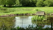 WS View of ball dropping in pond having duck house / Canterbury, Kent, UK - HD stock video