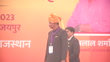 JAIPUR, INDIA - DECEMBER 15: Visuals from the swearing-in ceremony of Rajasthan CM-designate Bhajan Lal Sharma and his two deputies at the historic Albert Hall on December 15, 2023 in Jaipur, India. The ceremony is being attended by BJP’s top brass, including Prime Minister Narendra Modi, Amit Shah, and BJP president J P Nadda. (Footage by Times Network India via Getty Images)