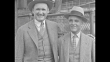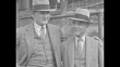 Walter Johnson and Washington Senators president Clark Griffith wearing suits and hats standing outside fence / MS Johnson and Griffith, Johnson's arm on Griffith's shoulder, they start smiling big / CU Johnson, he takes off his hat / Note: [exact month/day not known]
