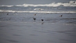 "Whimbrels (Numenius phaeopus), belonging to the sandpiper family (Scolopacidae), search for food along California's Central Coast. Their downward curving bills, reaching 75 mm in length, are highly sensitive and are used to find and dig up small crustaceans in the sand. The whimbrel is one of the most widespread shorebirds of the world."