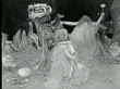 1914 B/W Wide shot Cavewoman brandishing weapon and running around cave - stock video