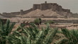 1999 Wide shot Palm trees growing in desert near ancient Citadel of Bam/ Bam, Kerman Province, Iran - HD stock video