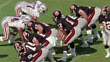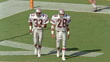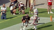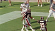 1985 Wide shot pan Houston Gamblers player Jim Kelly throwing pass to Vince Courville during game against Tampa Bay Bandits / USA - HD stock video