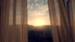 Window curtain at sunrise