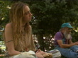 Music: Woodstock Festival 94:; USA: New York: Woodstock Village:LAMS Hippy on street plays "Little Wing" by Jimmy Hendrix on a Fender Stratocaster electric guitar SOTLMS Hippy plays as small crowd sit and listenLACMS Oriental hippy sits in shorts and listensMS Hippys sit on grass without shirtsMS Young hippy woman sits on grassLACMS Hippy sits and reads bookCMS Hippy smiles and wavesCMS Hippy intvwd SOT- 69 was about love and peace/ This is about moneyMS Nicholson i/c and sign off as hippys play around him SOTTX 9.8.94/NAO