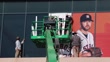 HOUSTON, TEXAS - OCTOBER 6: Workers install photos of Chas McCormick and Ryan Pressly of the Houston Astros by photographer Evan Triplett as building wrappings prior to the start of the ALDS series between the Houston Astros and the Minnesota Twins at Minute Maid Park on October 6, 2023 in Houston, Texas. (Footage by Carmen Mandato/Getty Images)