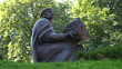 Yaroslav the Wise monument in front of the Golden Gate, medal sculpture Yaroslav is holding a miniature of the Saint Sophie Cathedral